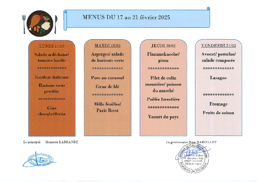 Menu de la semaine