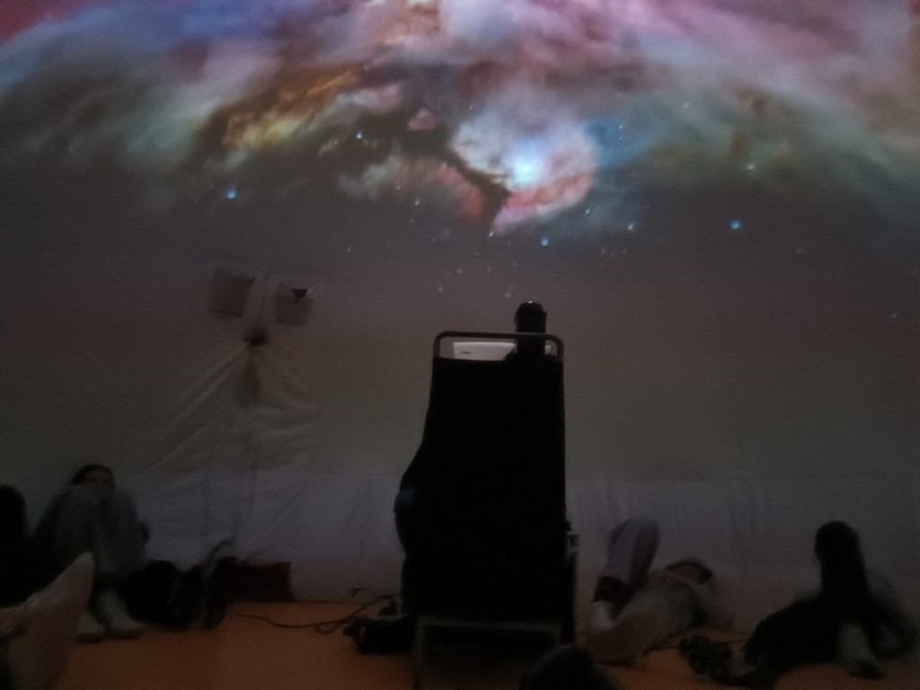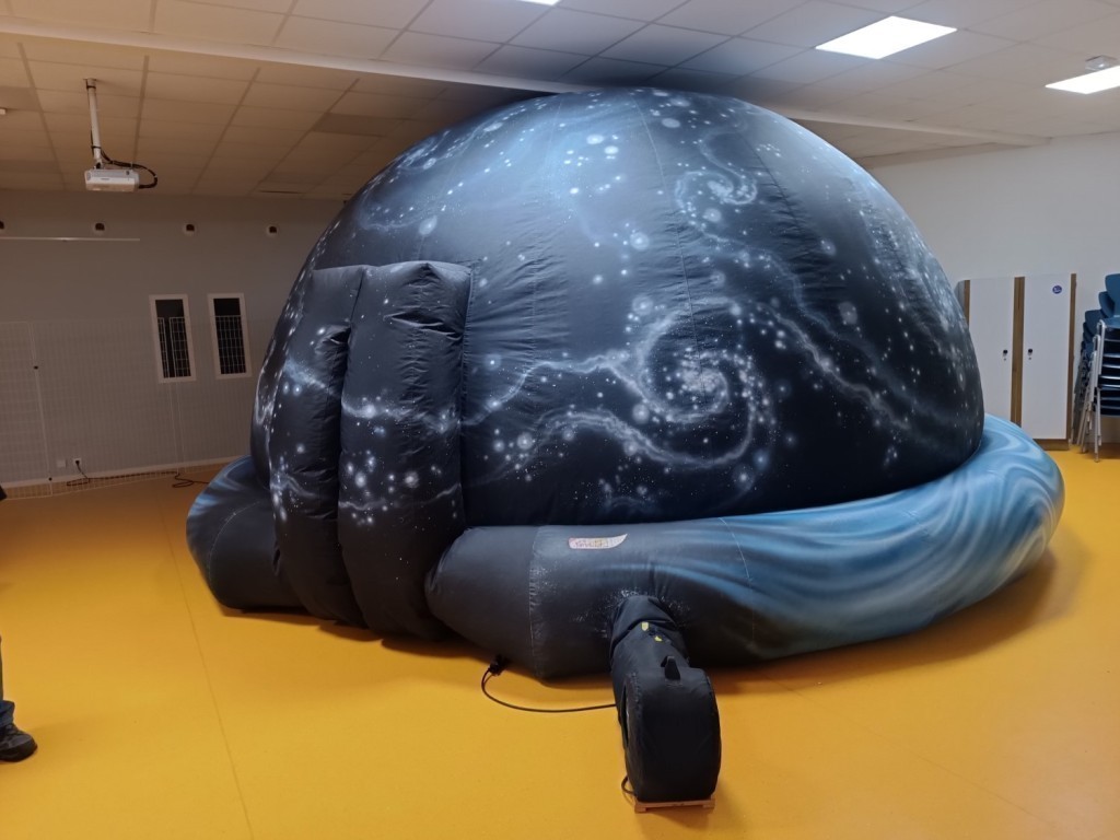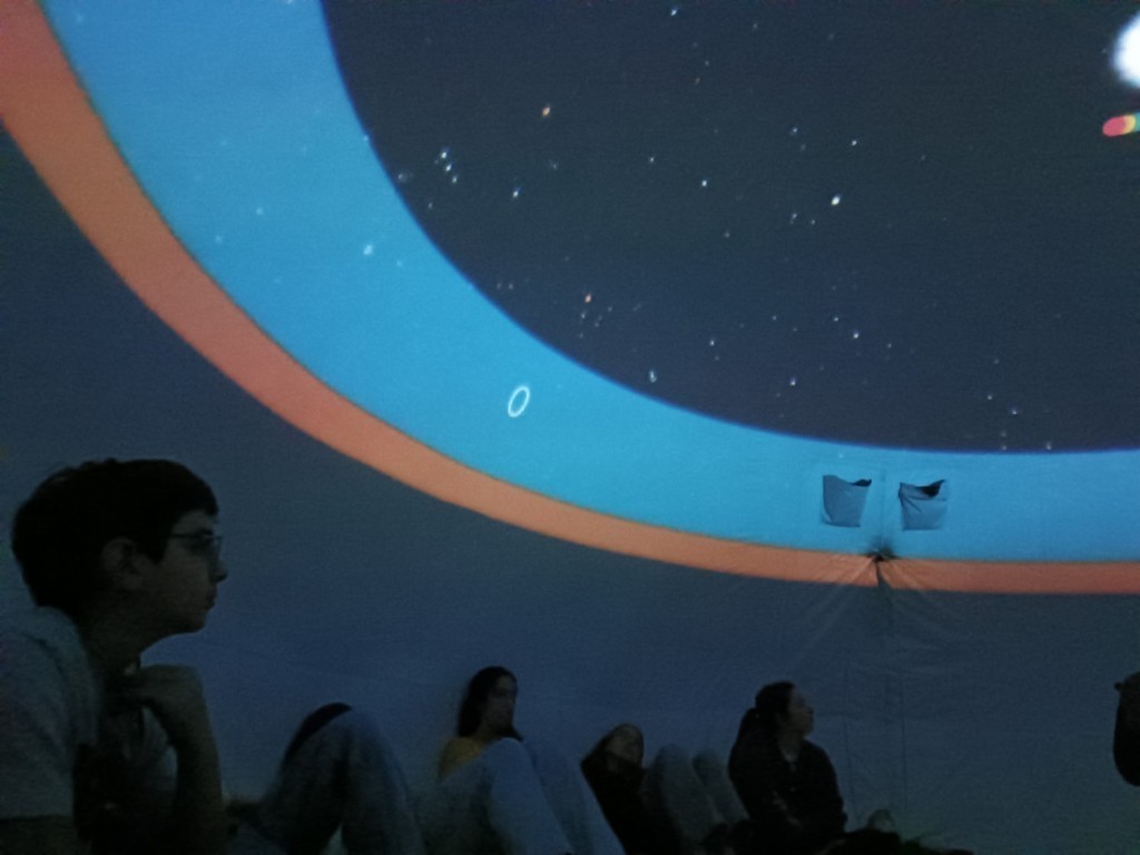 Sur la thématique du Système Solaire et des distances dans l'univers, l’ensemble des élèves de quatrième ont bénéficié à la fin du mois de mars 2026 d’une séance de « planetarium » . Ce terme désigne le dôme hémisphérique présentant une reproduction du ciel animée avec ses constellations, ses étoiles, ses planètes, ses nébuleuses, galaxies et objets de l’univers.