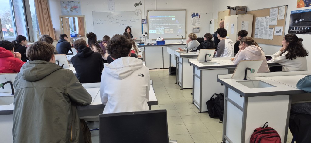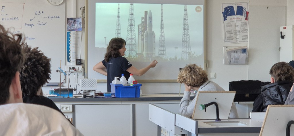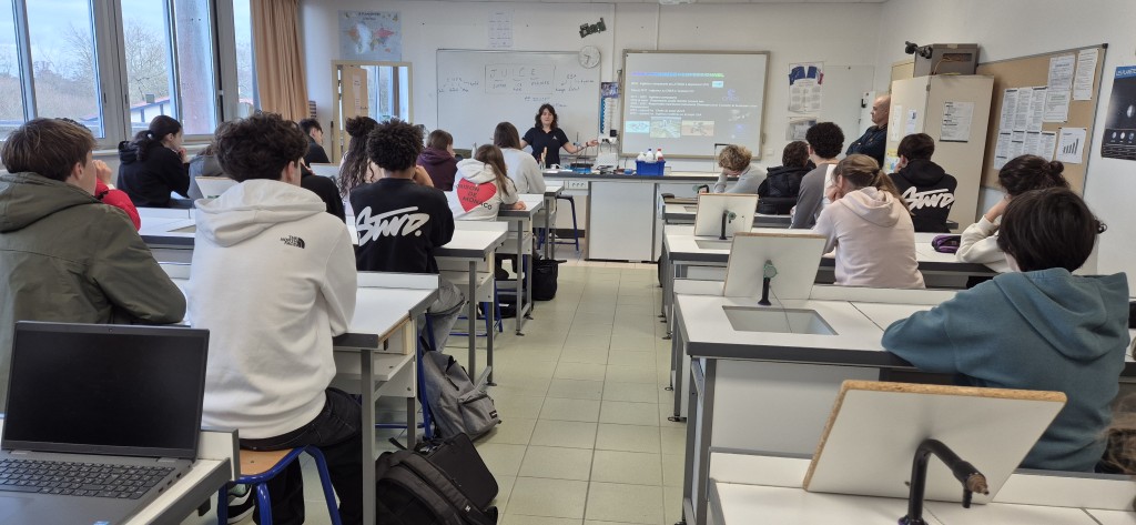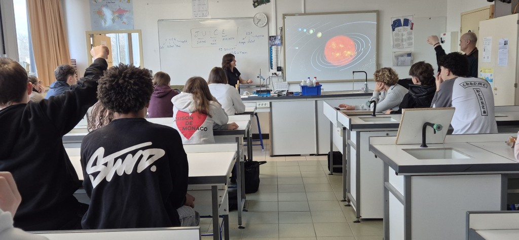 À l'aide d'un support visuel riche, Mme Doucet a retracé son parcours académique et professionnel jusqu'à son rôle actuel de cheffe de la mission JUICE (JUpiter ICy moons Explorer). Ce programme d'envergure, piloté par l'ESA (Agence Spatiale Européenne) avec une participation majeure du CNES, consiste à envoyer une sonde vers Jupiter. L'objectif ? Explorer trois de ses lunes glacées : Europe, Ganymède et Callisto, afin d'y déceler d'éventuels marqueurs de vie.Une collaboration pédagogique réussie, de nombreuses questions, des échanges riches avec les élèves, cette conférence d'une heure et demie a été rendue possible grâce à M. Marquestaut, représentant de la Société d'Astronomie de la Côte Basque et M. Bascans, professeur de Physique-Chimie.