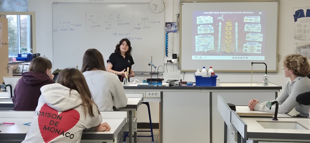 Le vendredi 06 février 2026, les élèves de 3ème du collège de Tarnos ont eu le privilège d'accueillir Mme Charlène DOUCET, ingénieure en chef au CNES, le Centre national d’études spatiales.Cette rencontre captivante, qui s'est tenue en salle de Sciences Physiques, a permis de lever le voile sur les coulisses des grandes missions spatiales et sur le parcours d'une femme d'exception.